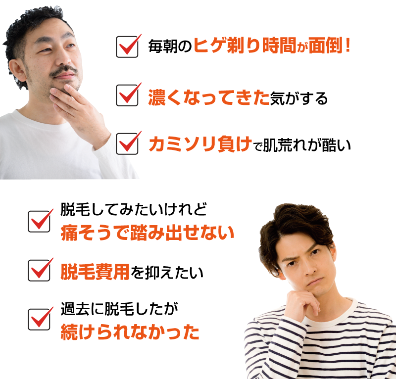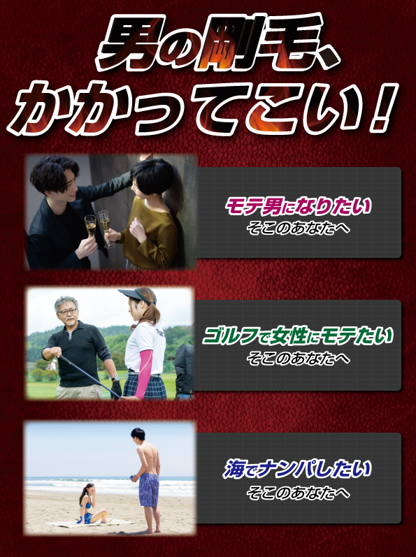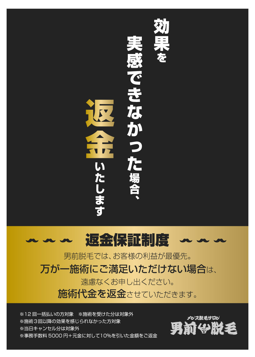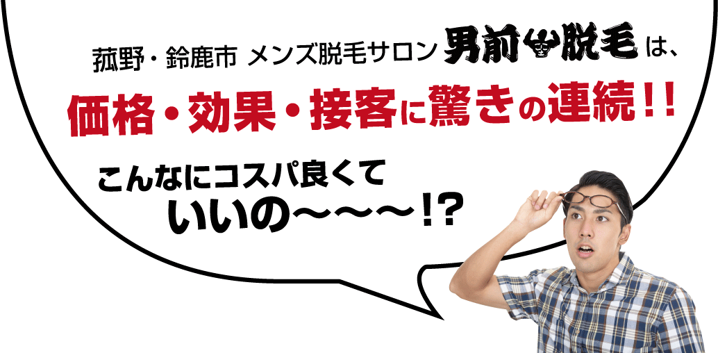 「男前脱毛」では出力が大きく照射回数が少ない脱毛が可能なので通う回数は限りなく少なく、とても安く脱毛が出来ます!