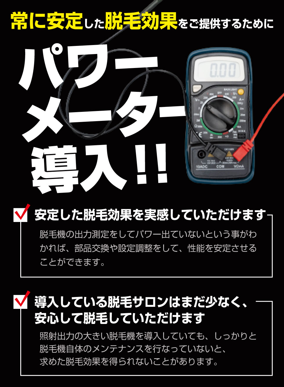 ※お客様の肌等の状態によって大きめの出力での施術が不可能な場合もありますので、ご理解下さい。
