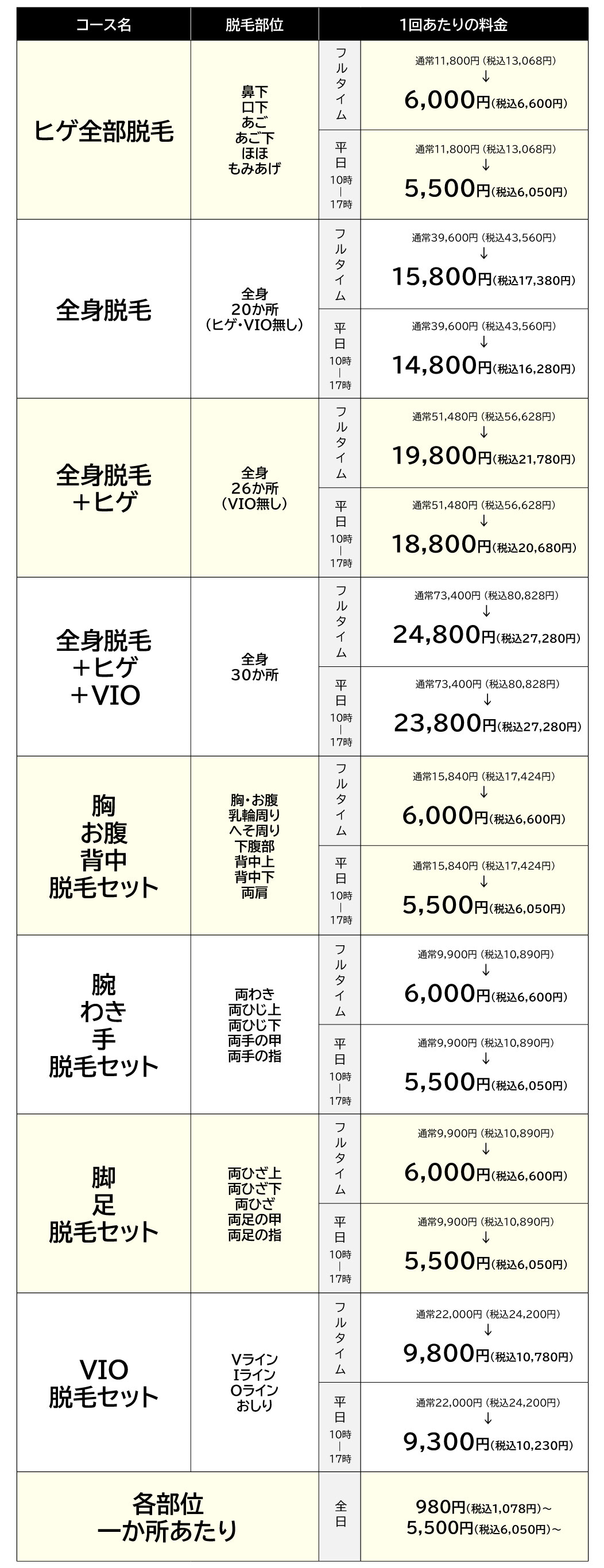 | 男前脱毛 | 他店 | |